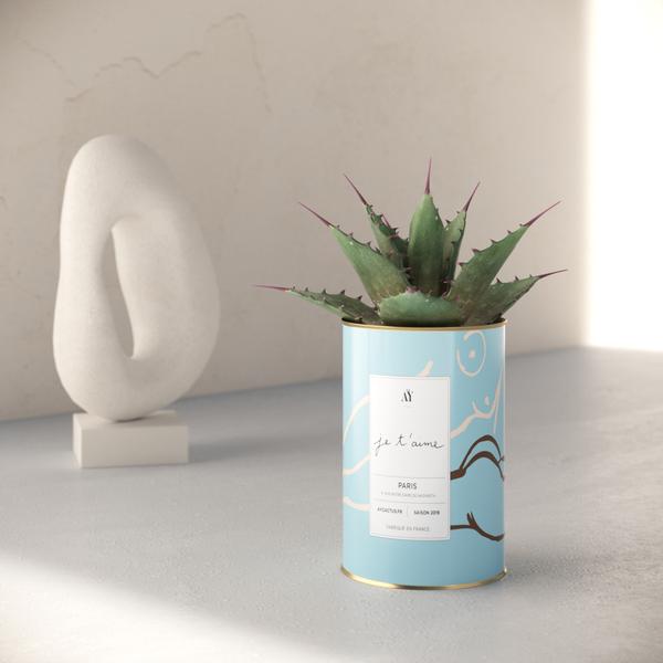 En duo ou seul, un cactus ou une plante grasse avec un message tout doux. J’apprécie tout particulièrement les plantes vertes, ici le petit plus est vraiment le design contemporain du pot. De quoi tous les jours vous rappeler votre amour.