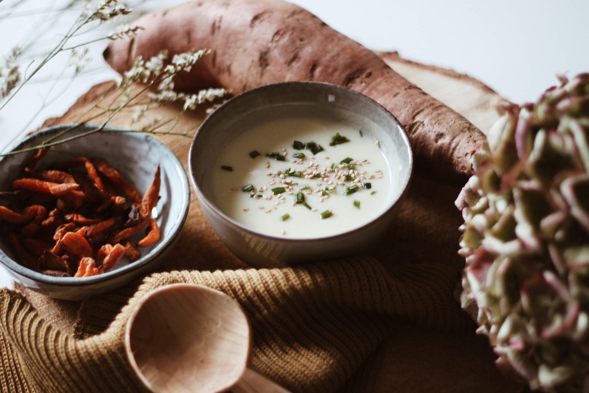 Une délicieuse crème de panais qu’on adore déguster avec des frites de patates douces.