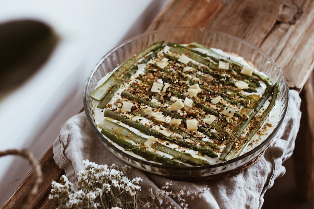 - Disposez vos asperges sur la tarte.