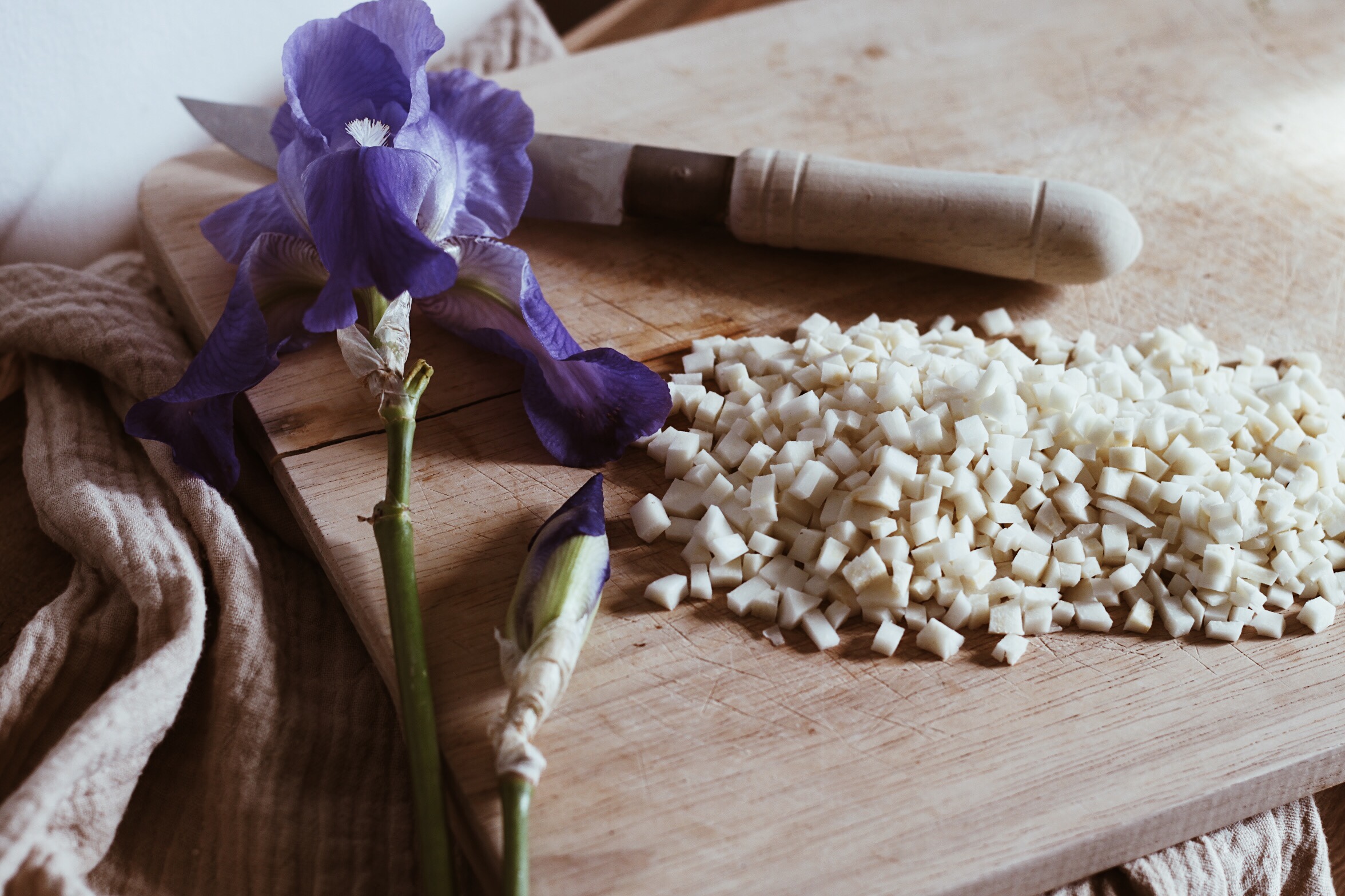 * Nettoyez vos racines & découpez-les en tout petits morceaux.